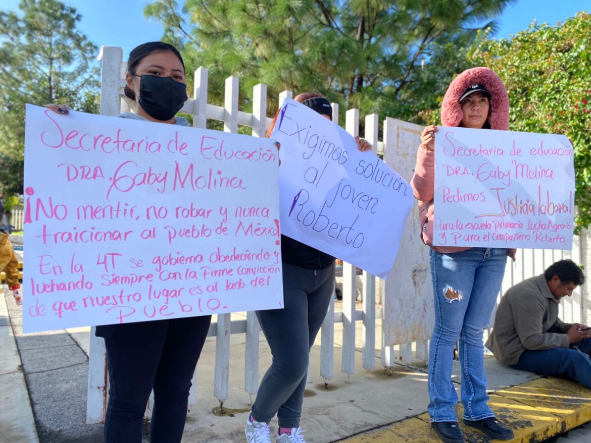 Fue en plena mitad de semana que el adscrito a la Escuela Primaria “Lucha Agraria” de Álvaro Obregón, Roberto Guerrero, se presentó en las inmediaciones de la Secretaría de Educación Pública, acompañado por padres y madres de familia de las niñas y niños que estudian en esta escuela y que impulsan las exigencias de Roberto: resolver los trámites que lleva para la obtención de una plaza desde hace más de 2 años.
