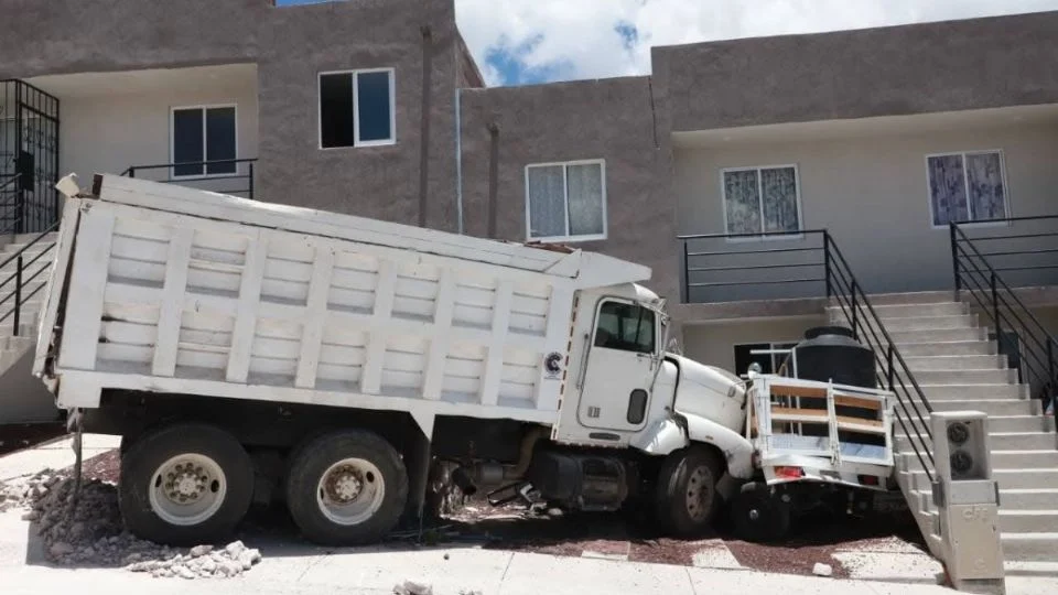 El accidente habría ocurrido presuntamente por una falla en el sistema de frenado de la pesada unidad, lo que ocasionó que el conductor perdiera el control del volante y terminara impactándose contra la vivienda y los dos vehículos.