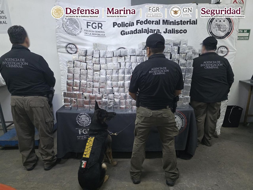 En otra acción, en el estado de Jalisco, elementos de seguridad, al realizar recorridos de vigilancia Camino a la Teja, hallaron 480 kilos de metanfetamina que estaban ocultos en la estructura de vehículos de carga.