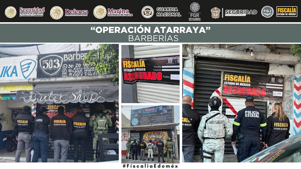 En un operativo simultáneo en 20 municipios del Estado de México, la Fiscalía Edoméx, en coordinación con el Gabinete de Seguridad del Gobierno de México y la Secretaría de Seguridad del Edoméx, aseguró 312 establecimientos tipo barberías y estéticas que presuntamente eran utilizados por grupos delictivos.