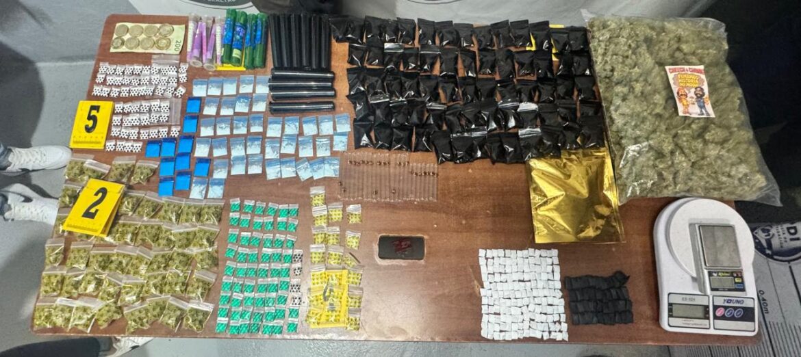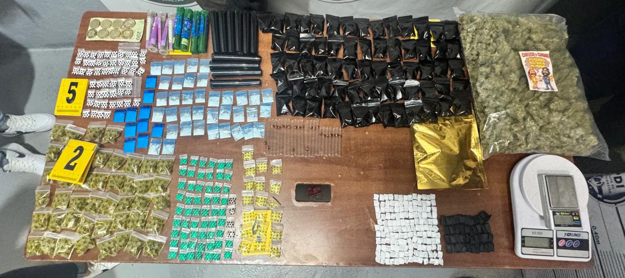 Durante el cateo, se aseguraron 481 dosis de sustancias ilícitas, entre ellas cocaína en piedra y en polvo, marihuana, droga conocida como cristal, así como 19 cigarros de marihuana, dos básculas digitales y dinero en efectivo. Como resultado de esta acción fueron detenidos Juan Carlos “N”, de 26 años; Helcias “N”, de 21 años; y dos adolescentes, de 15 y 16 años, quienes quedaron a disposición del Ministerio Público para determinar su situación legal.