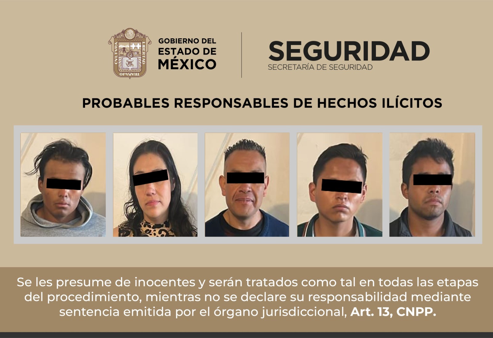 Como resultado de una acción coordinada derivada de denuncias ciudadanas y trabajos de investigación en campo, elementos de la Secretaría de Seguridad del Estado de México (SSEM), en conjunto con la Guardia Nacional (GN), la Fiscalía General de Justicia del Estado de México (FGJEM) y la Policía Municipal, detuvieron a cinco personas probables implicadas en delitos contra la salud, en la colonia San Pedro Cholula.