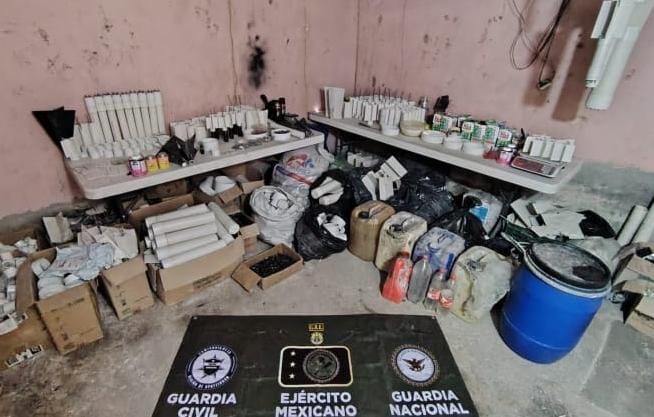 En cumplimiento al mandato judicial, elementos de la Guardia Civil, Ejército Mexicano, Guardia Nacional y FGE se trasladaron a un inmueble ubicado en la citada comunidad, donde fueron localizados 73 explosivos improvisados con modificaciones para ser lanzados mediante dron, también se encontraron un esmeril tipo banco, un cortador de metal, un tornillo de banco y soldadora.
