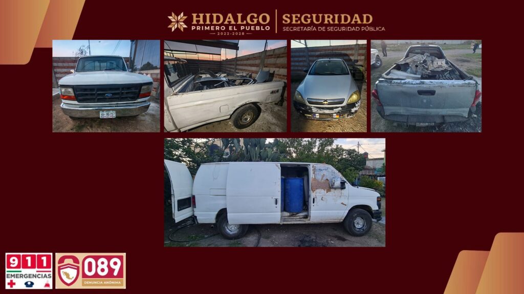 Cuautepec de Hinojosa, Hidalgo.- Así como 120 piezas de autopartes robadas, 758 dosis de presunta droga y siete vehículos, varios de ellos con irregularidades y reporte de robo, tras la ubicación de cuatro inmuebles presuntamente vinculados con actividades delictivas.