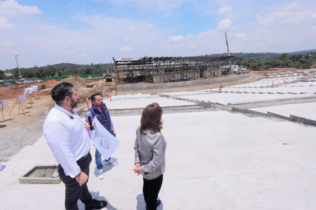 “Aquí será el escenario, las gradas para siete mil personas; ustedes irán viendo, todas las veces que vengamos, el avance de este proyecto tan importante para Tlaxcala. Aquí Lalo y Vicente Mazorra son las personas que me acompañan, quienes supervisan la obra para que tenga todas las condiciones y, sobre todo, que este proyectada para que las familias de Tlaxcala tengan un lugar hermoso para disfrutar”, subrayó la mandataria estatal.