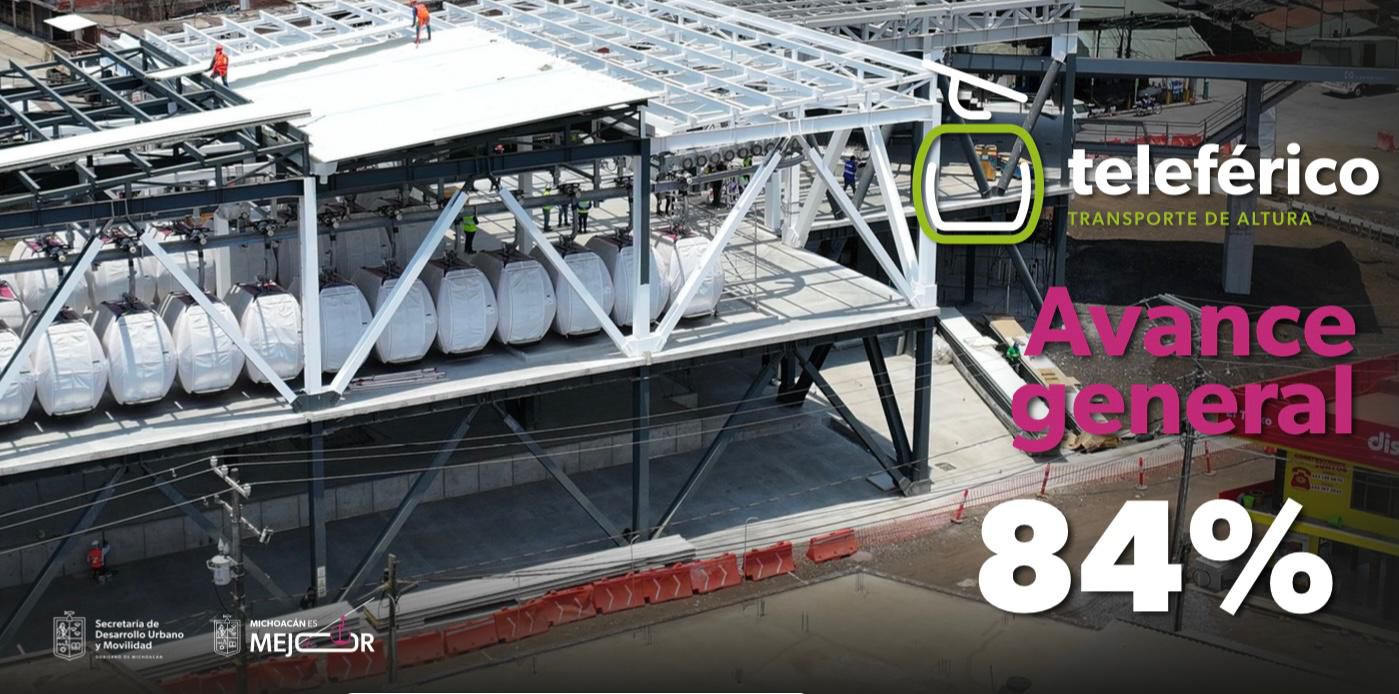 El proyecto del teleférico en Uruapan avanza con paso firme, con un progreso general del 84 por ciento, informó la secretaria de Desarrollo Urbano y Movilidad (Sedum), Gladyz Butanda Macías, en conferencia de prensa encabezada por el gobernador Alfredo Ramírez Bedolla.