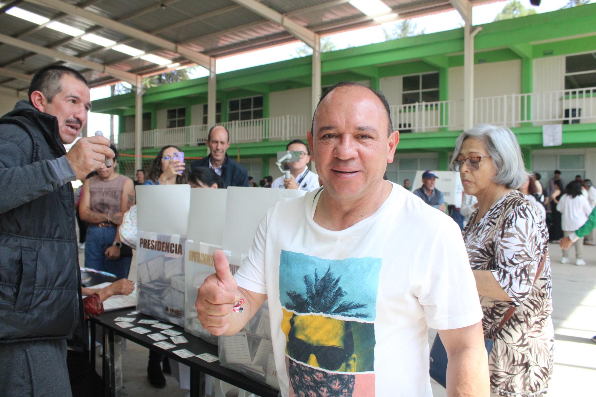 - 11:39 | El candidato a la alcadía por Metepec de la coalición “Sigamos haciendo historia” acudió desde las 10:30 a la casilla 2532 en las instalaciones de una secundaria del Barrio de Santiaguito