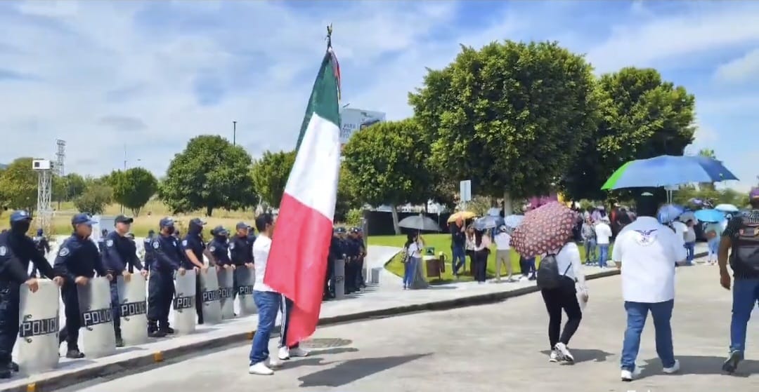 Un grupo de trabajadores del Poder Judicial Federal mantienen cerrada la Vía Atlixcáyotl, tras manifestarse en las afueras del Museo Internacional del Barroco, en protesta por la Reforma del Poder Judicial y donde se realiza una reunión nacional de magistrados. Personal de Seguridad Pública del Estado desplegó operativo, para evitar que se registre algún accidente o hecho delictivo.