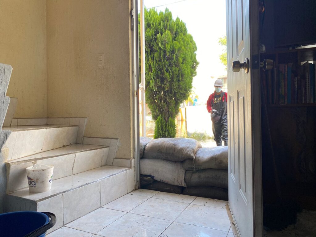 “Tengo aquí desde el 2011 habitando y nunca habíamos tenido este problema a este nivel. Una vez que sacamos el agua, las barreras de costales de arena han impedido que entre el agua al cien por ciento a la casa, sin embargo sí alcanzaron a mojarse un poco muebles de la tele, la estufa, el refrigerador”.