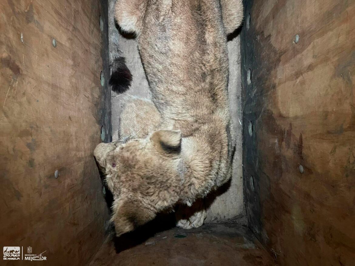 Los ejemplares, un tigre de Bengala y una leona africana, fueron hallados en condiciones de abandono extremo. El tigre permanecía confinado en una jaula sin techo, mientras que la leona se encontraba amarrada del cuello a la misma estructura. Ambos animales estaban rodeados de basura y carecían de las condiciones mínimas de bienestar, lo que ponía en grave riesgo su salud.